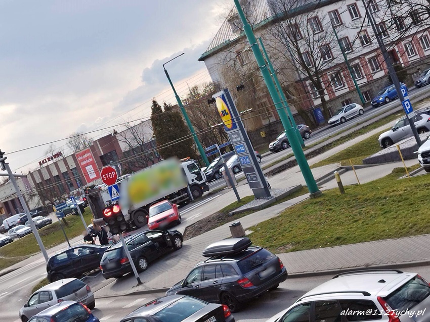 10 marca około godziny 14:30 na skrzyżowaniu ul. Glinczańska – Budowlanych – Burschego doszło do groźnie wyglądającego zdarzenia drogowego udziałem samochodu osobowego marki VW oraz śmieciarki na podwoziu Renault. Na miejsce zdarzenia zadysponowane zostały: ZRM oraz zastępy JRG Tychy. Na czas działań w miejscu zdarzenia występowały utrudnienia w ruchu. Przed przyjazdem na miejsce służb ratunkowych z pomocą kierującej VW kobiecie pospieszyli świadkowie zdarzenia. Kierująca VW kobieta trafiła następnie pod opiekę przybyłych na miejsce ratowników medycznych i została przetransportowana do szpitala na dokładne badania. Z naszych ustaleń wynika, że nie doznała ona poważnych obrażeń. Z relacji uczestników zdarzenia wynika, że kierująca VW wjechała na ul. Budowlanych z ul. Glinczańskiej przy nadawanym dla niej czerwonym świetle z zieloną strzałką do skrętu w prawo. Kierująca zagapiła się i wjechała na skrzyżowanie wprost pod jadącą (zielone światło) na wprost ul. Budowlanych śmieciarkę doprowadzając do kolizji. Uczestnicy zdarzenia spisali stosowane oświadczenie. Utrudnienia w ruchu trwały około godziny.