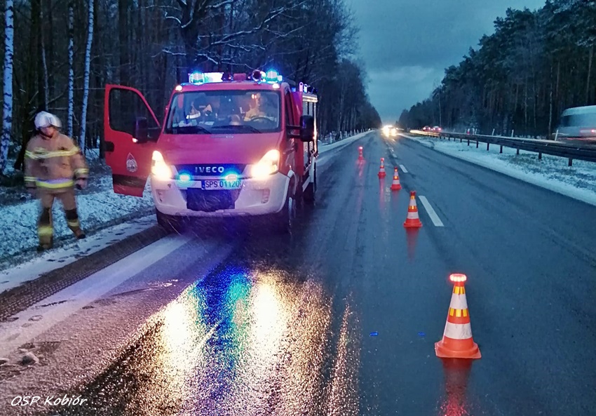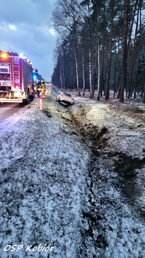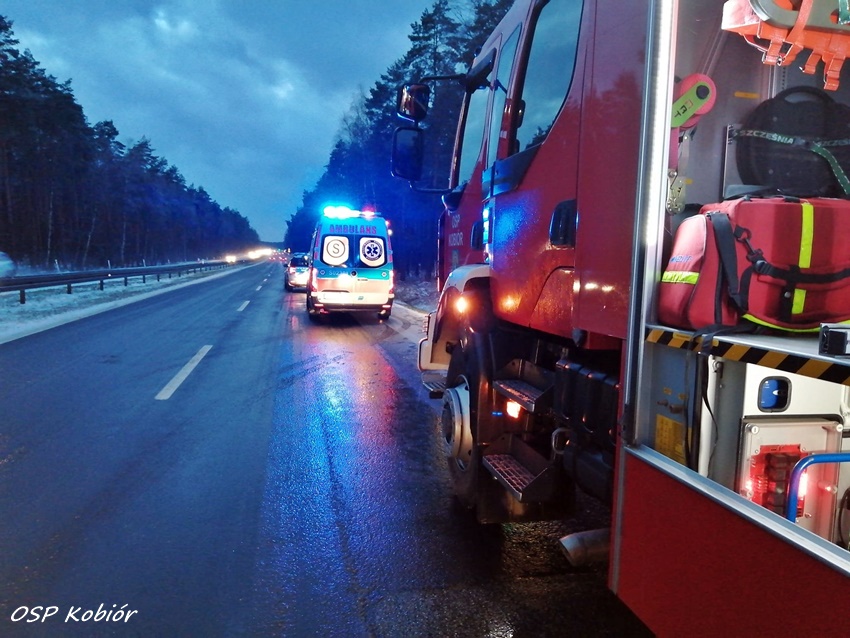 11 marca około godziny 17:35 na trasie DK1 (573 km) w Kobiórze na pasie w kierunku Pszczyny doszło do zdarzenia drogowego z udziałem jednego pojazdu marki Peugeot. Kierująca osobówką kobieta (24 lata) utraciła panowanie nad swoim pojazdem i wjechała do przydrożnego rowu. Na miejsce zdarzenia wezwane zostały: ZRM, zastępy straży pożarnej z OSP Kobiór i JRG Pszczyna oraz Policja. Na czas działań prawy pas w kierunku Pszczyny był zablokowane. Kierująca trafiła pod opiekę ratowników medycznych. Na szczęście nie doznała poważnych obrażeń. Uszkodzony pojazd został wyciągnięty z rowu i odholowany przez wezwaną na miejsce pomoc drogową. Utrudnienia w ruchu trwały około godziny.
