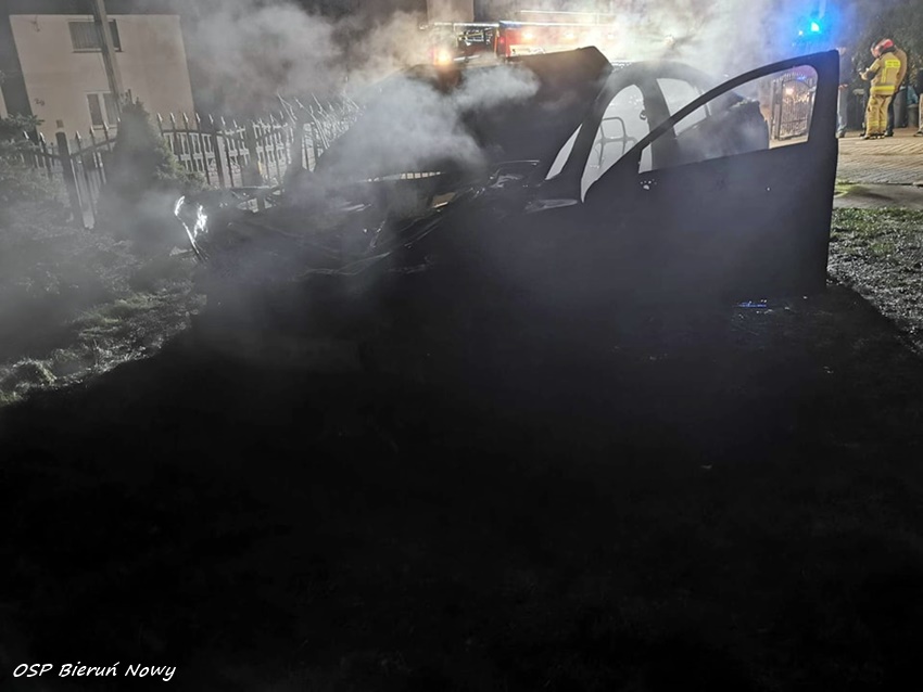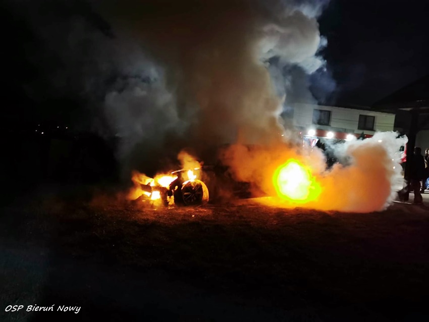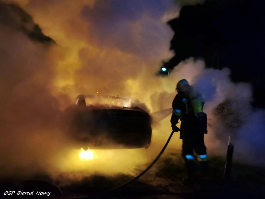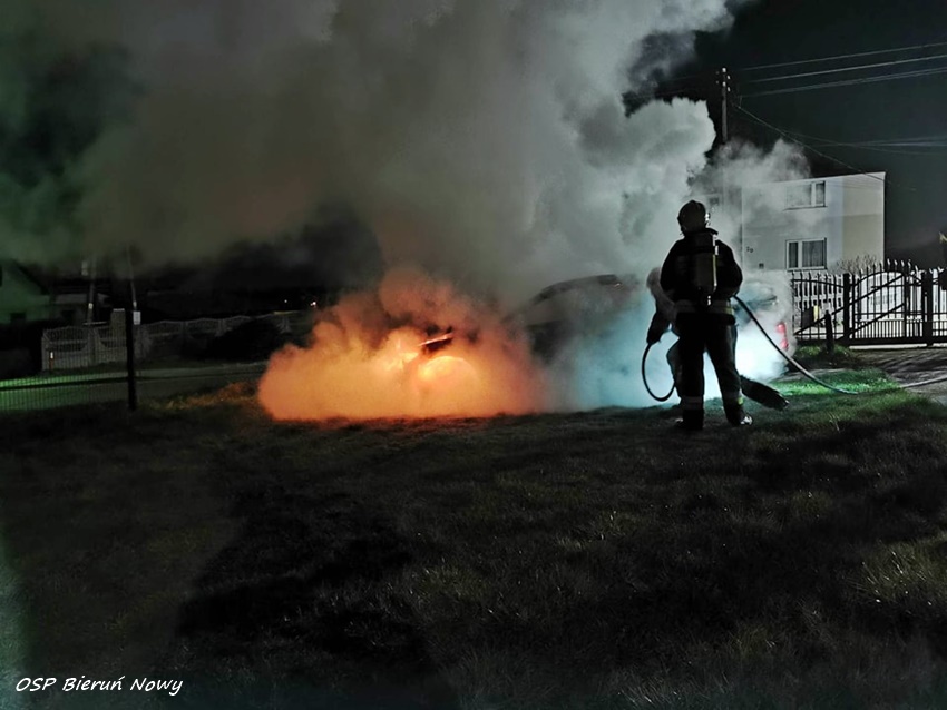 5 kwietnia około godziny 2:35 dyżurny SK KM PSP Tychy otrzymał zgłoszenie o pożarze samochodu osobowego na terenie jednej z posesji przy ul. Majowej w Bieruniu. Na miejsce zgłoszenia zadysponowane zostały zastępy strażaków z OSP Bieruń Nowy oraz JRG Tychy, a także patrol Policji. Po dotarciu na miejsce zgłoszenie zostało potwierdzone. Strażacy w aparatach ochrony układu oddechowego przystąpili do działań gaśniczych. Po kilkunastu minutach pożar został ugaszony. Policjanci KPP Bieruń prowadzą postępowanie w tej sprawie.