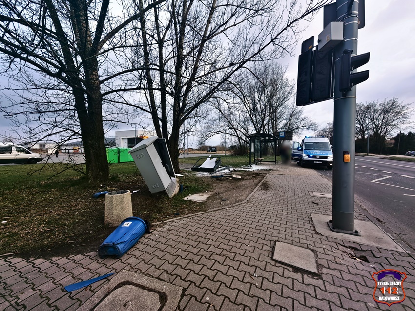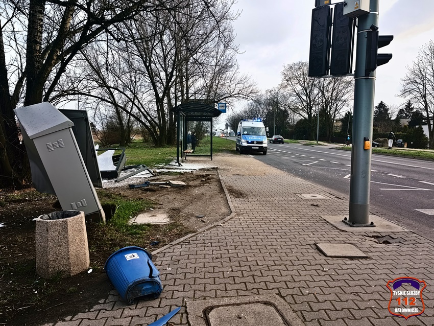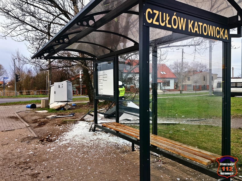 8 kwietnia około godziny 18 dyżurny KMP Tychy otrzymał zgłoszenie o zniszczeniu przystanku autobusowego przez kierującego samochodem osobowym, który oddalił się z miejsca zdarzenia. Na miejsce zdarzenia zadysponowane został jeden z patroli tyskiej drogówki. Przybyli na miejsce Policjanci potwierdzili zgłoszenie, a dodatkowo poza wiatą przystankową uszkodzona została elektryczna skrzynka sterująca sygnalizacją świetlną. W związku z powyższym na miejsce wezwane zostały służby odpowiedzialne za elementy infrastruktury oraz zastęp tyskich strażaków, którzy uprzątnęli pas drogowy z rozbitego szkła. Policjanci KMP Tychy ustalają sprawcę zdarzenia wykorzystując monitoring miejski zamontowany na pobliskim skrzyżowaniu z ul. Zwierzyniecką.