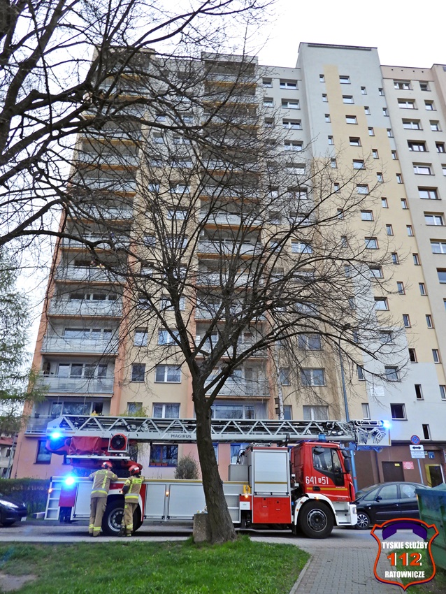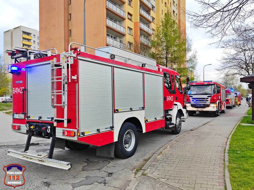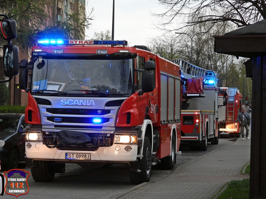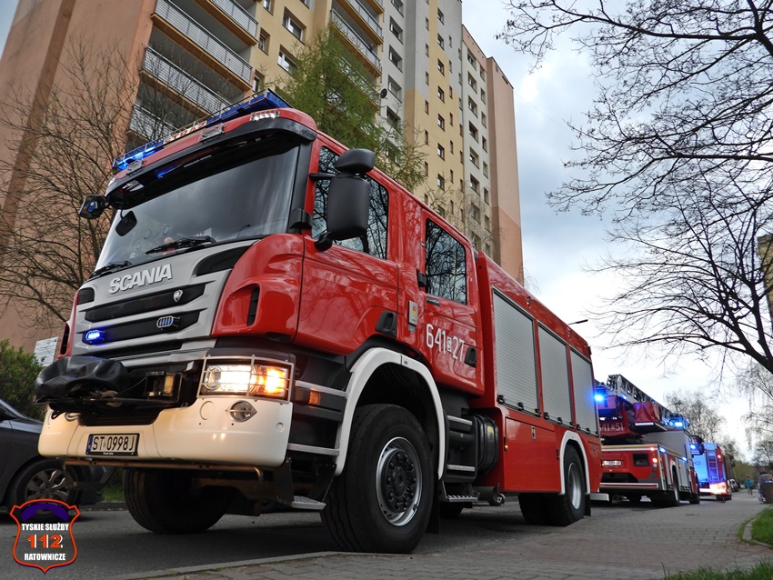 18 kwietnia około godziny 18:40 dyżurny SK KM PSP Tychy otrzymał zgłoszenie o pożarze w jednym z mieszkań w budynku wielorodzinnym przy ul. Hubala 1. Na miejsce zgłoszenia zadysponowany został pluton gaśniczy JRG Tychy oraz patrol Policji. Po przybyciu na miejsce okazało się, że doszło do pożaru instalacji elektrycznej (przy bezpiecznikach), a lokatorzy stłumili już ogień przy użyciu gaśnicy. Dwie osoby przebywające w mieszkaniu nawdychały się dymu. Na miejsce zdarzenia wezwany został ZRM, a także: pogotowie gazowe, pogotowie energetyczne oraz pogotowie techniczne TSM Oskard. Jeden z mężczyzn został poddany tlenoterapii przez strażaków, a po przybyciu na miejsce ratowników medycznych obaj trafili pod ich opiekę. Na szczęście nie było konieczności ich hospitalizacji. Działania na miejscu trwały około godziny.