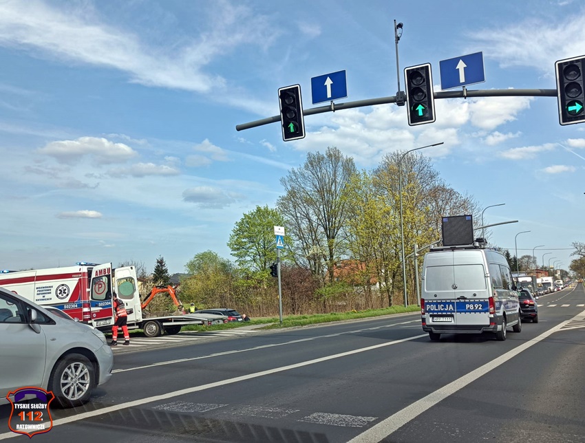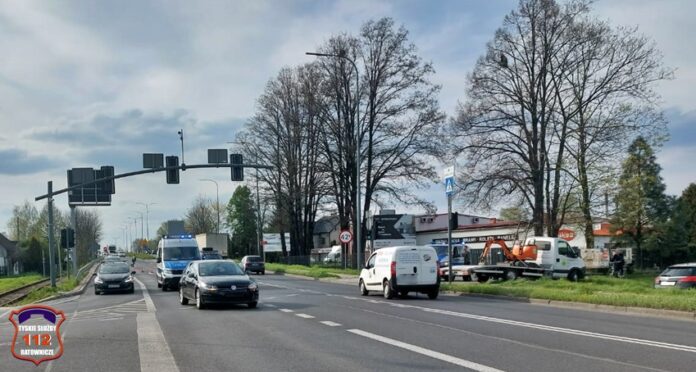 27 kwietnia około godziny 16 dyspozytor medyczny WPR Katowice oraz dyżurny KMP Tychy otrzymali zgłoszenie o zdarzeniu drogowym na skrzyżowaniu ul. Mikołowska – Asnyka. Ze zgłoszenia wynikało, że po zderzeniu jeden z pojazdów wypadł z drogi do rowu. Na miejsce zadysponowany został ZRM oraz patrole Policji. W trakcie działań jeden pas do jazdy w kierunku browaru został wyłączony z ruchu. W zdarzeniu brały udział pojazdy marek Opel i VW. Z ustaleń pracujących na miejscu Policjantów wynika, że kierująca VW kobieta (33 lata) wjechała na skrzyżowanie przy nadawanym czerwonym świetle dla jej kierunku jazdy i doprowadziła do zderzenia z Oplem kierowanym przez kobietę (35 lat). Kobieta kierująca Oplem trafiła pod opiekę ratowników medycznych, a następnie została przetransportowana do szpitala na dokładne badania. W związku ze wstępnym zakwalifikowaniem zdarzenia jako wypadek na miejsce wezwany został policyjny technik kryminalistyki. Na szczęście po badaniach okazało się, że nie doznała poważnych obrażeń. Sprawczyni zdarzenia została ukarana mandatem. Utrudnienia w ruchu oraz działania służb trwały ponad dwie godziny.
