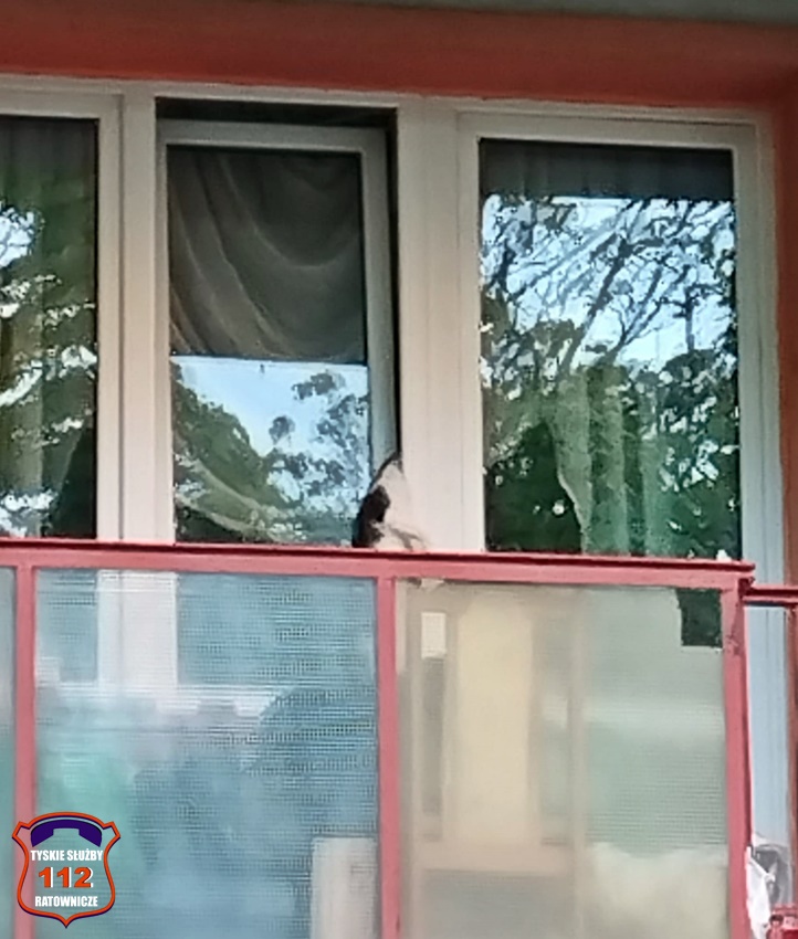 9 maja po godzinie 19 dyżurny SK KM PSP Tychy otrzymał zgłoszenie o kocie uwięzionym w oknie uchylnym jednego z mieszkań przy al. Niepodległości 88. Na miejsce zgłoszenia zadysponowany został zastęp strażaków JRG Tychy oraz patrol Policji. Po przybyciu na miejsce zgłoszenie zostało potwierdzone. Po sprawieniu drabiny ratowniczej jeden ze strażaków wszedł na balkon. Niestety na ratunek dla kociaka było za późno. Strażak zdjął zwłoki kociaka z okna. W trakcie działań w mieszkaniu nie było lokatorów. Po około trzydziestu minutach działania zostały zakończone.