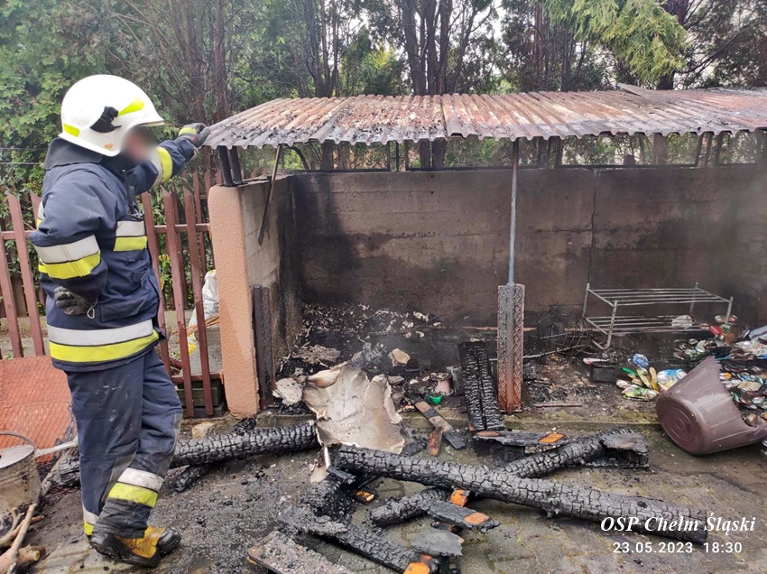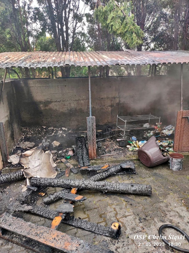 23 maja około godziny 18 dyżurny SKKM PSP Tychy otrzymał zgłoszenie o pożarze altany gospodarczej przy jednym z domów na ul. M. Dąbrowskiej w Imielinie. Na miejsce zgłoszenia zadysponowane zostały zastępy strażaków z OSP Imielin, OSP Chełm Śląski, JRG Tychy oraz patrole bieruńskiej Policji. Na czas działań ruch w miejscu zdarzenia był utrudniony. Działania strażaków na miejscu zdarzenia polegały na jego zabezpieczeniu oraz podaniu jednego prądu wody w natarciu na palące się przedmioty. Po około godzinie działania na miejscu zostały zakończone.
