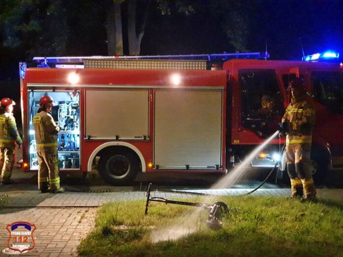 23 czerwca około godziny 22 dyżurny SK KM PSP Tychy otrzymał zgłoszenie o pożarze hulajnogi elektrycznej w jednym z mieszkań w budynku wielorodzinnym przy ul. Wojska Polskiego. Na miejsce zgłoszenia zadysponowany został pluton gaśniczy JRG Tychy oraz patrol Policji. W trakcie dojazdu zastępów na miejsce do SK KM PSP Tychy wpłynęła informacja, że mieszkańcy wyrzucili hulajnogę przez okno. Po dotarciu na miejsce i rozpoznaniu sytuacji okazało się, że akumulator hulajnogi eksplodował w mieszkaniu powodując znaczne szkody, a lokatorzy wyrzucili ją przez okno. Tam strażacy przystąpili do jej gaszenia, a następnie do chłodzenia akumulatora. Po około godzinie działania zostały zakończone. Trwa ustalanie przyczyn i okoliczności tego zdarzenia.