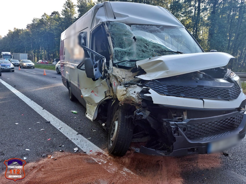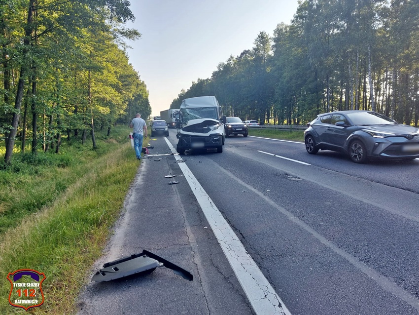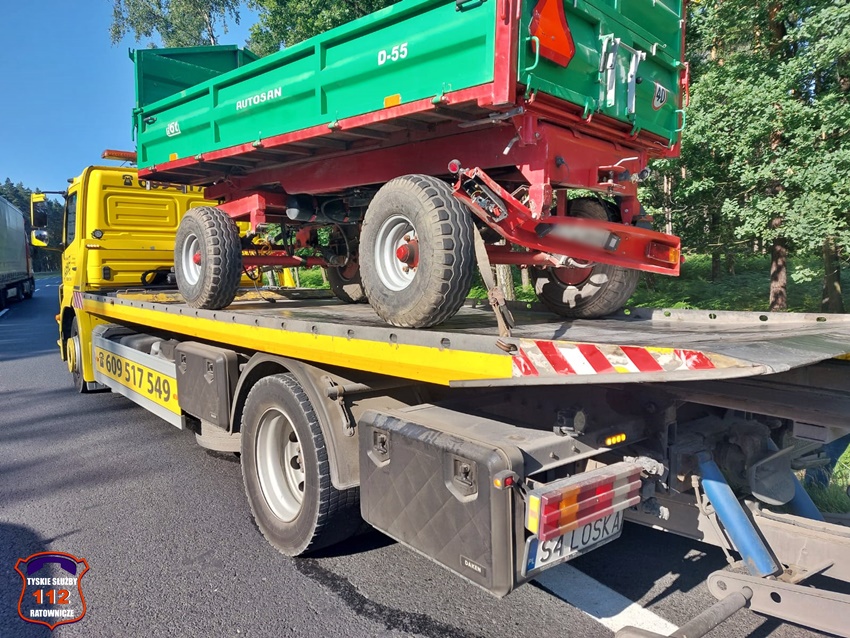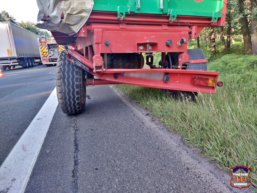 26 czerwca około godziny 7 na trasie DK 1 na pograniczu Tychów i Kobióra (kierunek Pszczyna) doszło do zdarzeni drogowego. W przyczepę ciągnika rolniczego uderzyło dostawcze Iveco. Na miejsce zdarzenia wezwane zostały: zastępy strażaków JRG Pszczyna, patrole WRD Policji z Tychów i Pszczyny oraz służba drogowa i pomoc drogowa. W trakcie działań prawy pas w kierunku Pszczyny był całkowicie zablokowany. Widząc zniszczenia samochodu dostawczego, aż trudno uwierzyć że nikt nie ucierpiał. Ze wstępnych ustaleń pracujących na miejscu Policjantów wynika, że kierowca dostawczaków nie zachował należytej ostrożności i uderzył w przyczepę. Utrudnienia w ruchu trwały ponad trzy godziny. Policjanci KPP Pszczyna prowadzą dalsze postępowanie w tej sprawie.