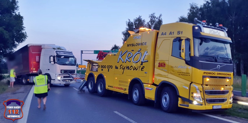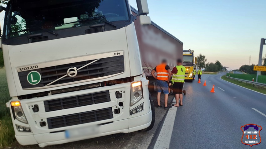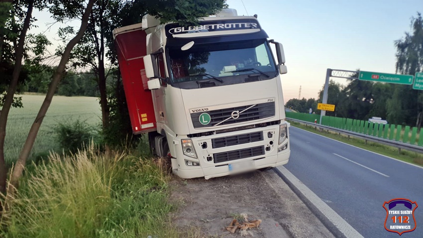 26 czerwca po godzinie 19:30 na ul. Turyńskiej (DK 44) w Bieruniu kierowca ciągnika siodłowego marki Volvo z naczepą zjechał z drogi do przydrożnego rowu. Kierowca na miejsce wezwał pomoc drogową. Na czas wyciągania zestawu ruch w kierunku Tychów został zablokowany. Miejsce działań zabezpieczał patrol bieruńskiej Policji. Około godziny 21 zestaw został wyciągnięty na drogę, a ruch przywrócono.