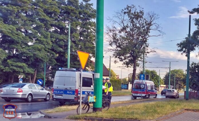 28 czerwca o godzinie 7:18 dyżurny KMP Tychy otrzymał zgłoszenie o potrąceniu rowerzystki przez samochód osobowy w rejonie Pętli Paprocańskiej przy ul. Sikorskiego. Na miejsce zdarzenia zadysponowany został ZRM i patrol drogówki. Na czas działań prawy pas w kierunku centrum miasta był zablokowany. W wyniku zdarzenia kobieta (56lat) poruszająca się rowerem doznała obrażeń ciała i po zaopatrzeniu na miejscu została przetransportowana do szpitala. Kierującej osobowym Fordem kobiecie (67 lat) nic się nie stało. Obie kobiety w chwili zdarzenia były trzeźwe. Ze wstępnych ustaleń pracujących na miejscu Policjantów wynika, że rowerzystka wjechała przed samochód wymuszając pierwszeństwo na kierującej samochodem i to ona jest sprawczynią tego zdarzenia. Policjanci KMP Tychy prowadzą dalsze postepowanie w tej sprawie.