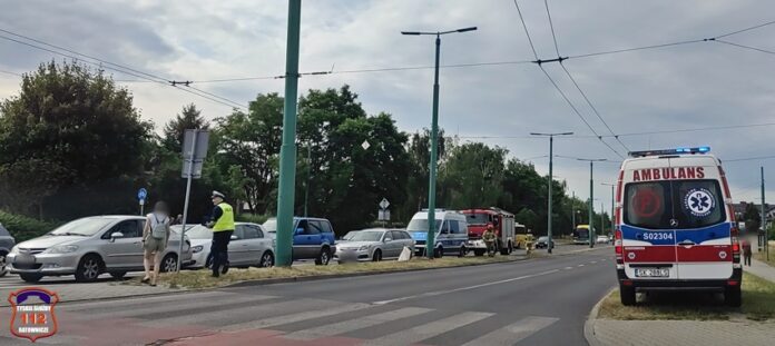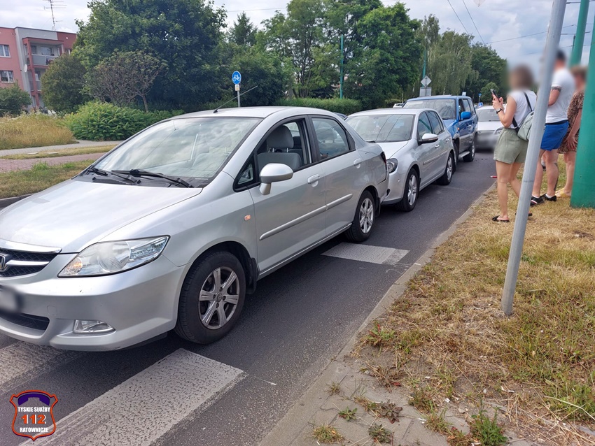 30 czerwca około godziny 16 na ul. Stoczniowców 70 przy wjeździe na rondo Żwakowskie (Stoczniowców 70 – Jaśkowicka) doszło do zdarzenia drogowego z udziałem trzech samochodów. W zdarzeniu brały udział: Honda, VW oraz Nissan. Na miejsce zdarzenia zadysponowane zostały: zastępy JRG Tychy, ZRM oraz patrol Policji. Na czas działań pas dojazdowy do ronda został częściowo wyłączony z ruchu. W wyniku zdarzenia poszkodowana została jedna osoba (z VW), która trafiła pod opiekę ratowników medycznych, a następnie została przetransportowana do szpitala na dokładną diagnostykę. Na szczęście po badaniach okazało się, że jej stan zdrowia nie wymaga hospitalizacji. Z ustaleń pracujących na miejscu Policjantów wynika, że sprawcą zdarzenia jest kierowca Nissana, który uderzył w poprzedzającego VW, a ten następnie w Hondę. jak się jednak okazało do zdarzenia doszło w wyniku awarii układu hamulcowego w Nissanie. Około godziny 21 działania służb zostały zakończone.