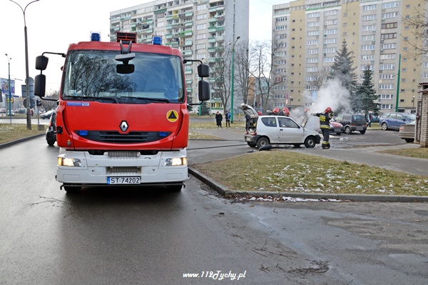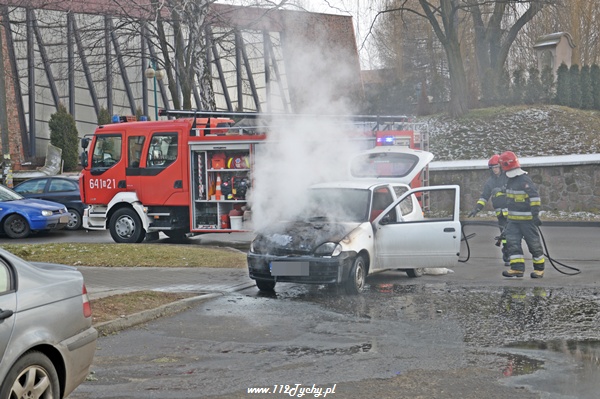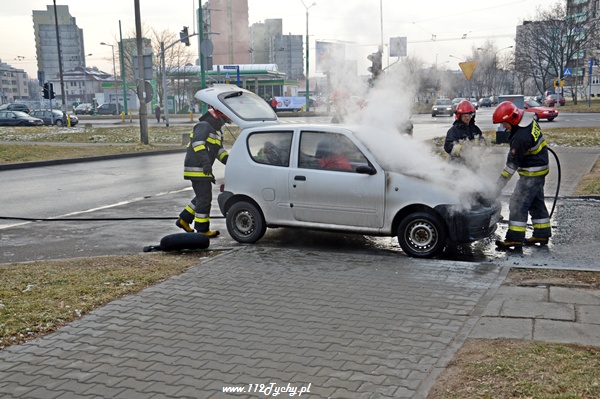 1 lutego około godziny 12.00 do MSK w Tychach wpłynęlo zgłoszenie pożarze samochodu osobowego na ul. Kopernika. Na miejsce zadysponowany został jeden zastęp JRG Tychy (GBA). Strażacy po dotarciu na miejsce zastali Fiata Seicento, w którym paliła się komora silnika. Przed ich przybyciem pożar próbowali ugasić inni kierowcy jednak bezskuteczne. Miejsce zdarzenia zostało zabezpieczone przez strażaków, a ich działania polegały na ugaszeniu pożaru i zakręceniu butli LPG. Pojazdem podróżowała kobieta z dzieckiem, a gdy zauważyła wydobywający się dym spod maski natychmiast zjechała na parking i powiadomiła odpowiednie służby. Nic im się nie stało. Całkowitemu spaleniu uległa komora silnika. Po około 40 minutach działań uszkodzony pojazd został ustawiony w bezpiecznym miejscu i strażacy wrócili do koszar.
