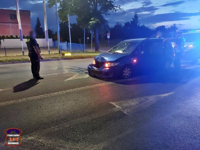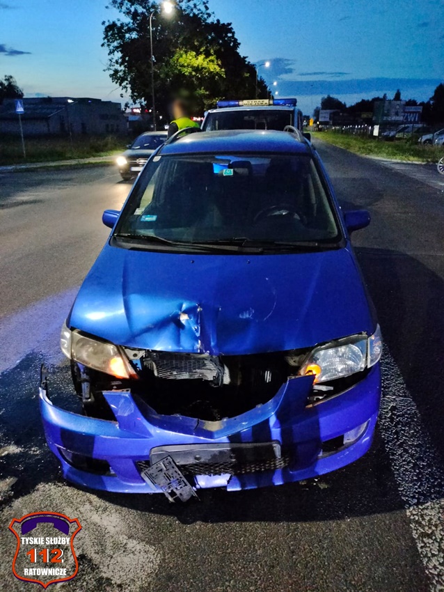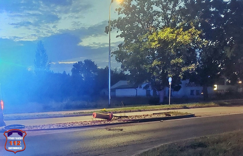 19 lipca po godzinie 21 dyżurny KMP Tychy otrzymał zgłoszenie, że na ul. Katowickiej w rejonie skrzyżowania z ul. Różaną doszło do zdarzenia drogowego. Ze zgłoszenia wynikało, że kierowca Mazdy nie zauważył wysepki i przez nią przejechał uszkadzając swój pojazd i znaki drogowe. Na miejsce zdarzenia zadysponowany został patrol Policji oraz patrol Straży Miejskiej. Po przybyciu na miejsce zgłoszenie zostało potwierdzone. W wyniku uderzenia w wysepkę i znaki doszło do wycieku płynów eksploatacyjnych z pojazdu. Dodatkowo na miejsce wezwany został zastęp strażaków JRG Tychy. Uszkodzony pojazd został odholowany przez wezwaną na miejsce pomoc drogową. Kierowca Mazdy (starszy mężczyzna) w wyniku zdarzenie nie doznał żadnych obrażeń. Uszkodzone oznakowanie zostanie naprawione z polisy właściciela Mazdy. Utrudnienia w ruchu trwały około godziny.
