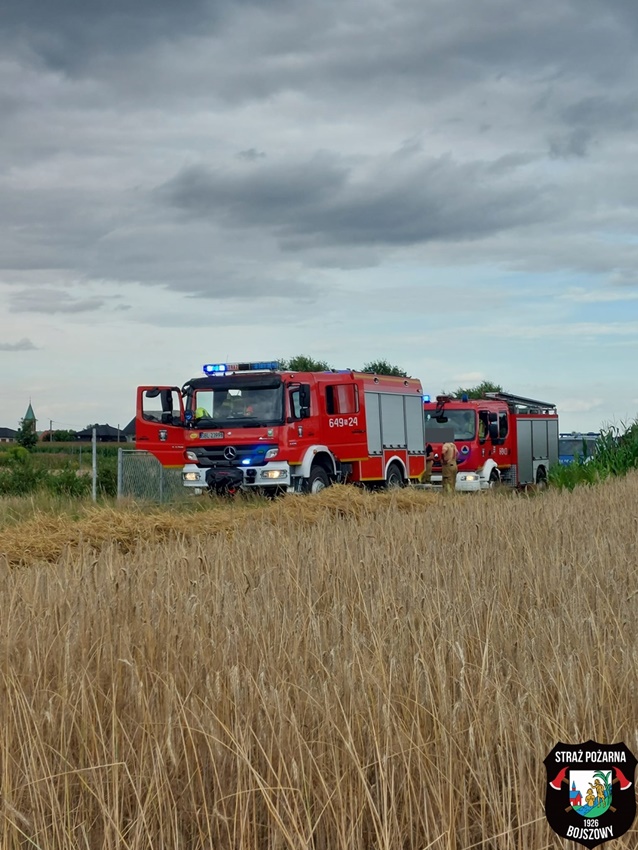 31 lipca około godziny 16:20 dyżurny SK KM PSP Tychy otrzymał zgłoszenie o pożarze zboża na pniu w rejonie ul. Polnej w Bojszowach. Ze zgłoszenia wynikało, że do pożaru doszło w wyniku awarii kombajnu i on również jest zagrożony pożarem. Na miejsce natychmiast zadyspowane zostały zastępy OSP Bojszowy oraz Policja. Strażacy zabezpieczyli miejsce pożaru i podali dwa prądu wody. Dzięki szybkim działaniom spaleniu uległo około 0,5ha, a po około godzinie działania zostały zakończone.