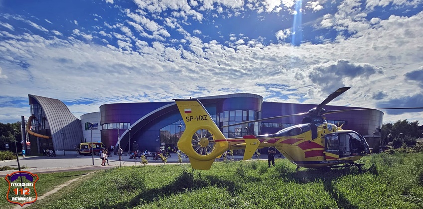 2 sierpnia około godziny 15:50 dyżurny SK KM PSP Tychy otrzymał zgłoszenie z prośbą o zabezpieczenie lądowiska dla załogi LPR – Ratownik 4 przy Parku Wodnym na ul. Sikorskiego. Ze zgłoszenia wynikało, że na terenie Wodnego Parku Tychy doszło do zasłabnięcia kobiety, a w jego wyniku do zatrzymania krążenia. Pomocy poszkodowanej kobiecie udzielali ratownicy medyczni z naziemnego ZRM Do działań zadysponowane zostały: motoambulanse WPR Katowice, zastęp JRG Tychy oraz Straż Miejska i Policja. Niestety pomimo wysiłku ratowników nie udało się uratować życia kobiety (67lat). Ze wstępnych ustaleń wynika, że kobieta zasłabła w basenie, skąd została wyciągnięta przez ratowników wodnych i przeprowadzona do pokoju medycznego. Na miejscu zdarzenia trwają Policyjne czynności mające wyjaśnić okoliczności tej tragedii.