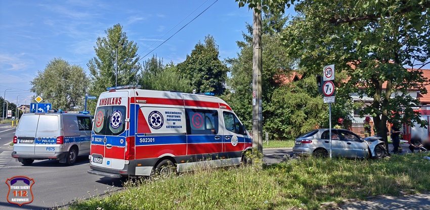 13 sierpnia po godzinie 15 dyżurny SK KM PSP Tychy otrzymał zgłoszenie, że na ul. Zwierzynieckiej samochód osobowy (Daewoo Lanos) uderzył w przydrożne drzewo. Na miejsce zdarzenia zadysponowano zostały zastępy JRG Tychy, ZRM oraz Policja. Ruch na ul. Zwierzynieckiej w rejonie skrzyżowania z ul. Katowicką został całkowicie zablokowany. Przed przybyciem służb ratunkowych na miejsce z pomocą poszkodowanym pospieszyli świadkowie zdarzenia. Kierowca pojazdu pozostał na miejscu, a jego pasażerka oddaliła się w nieznanym kierunku. Przybyli na miejsce strażacy i ratownicy medyczni zajęli się udzielaniem pomocy kierowcy, a Policjanci zabezpieczyli miejsce zdarzenia i podjęli poszukiwania pasażerki. Po kilkunastu minutach została ona odnaleziona ok. 800m od miejsca zdarzenia gdy sama powiadomiła operatora CPR, że uczestniczyła w zdarzeniu i źle się czuje. Kierowca jak i pasażerka zostali przetransportowani do szpitali celem dokładnej diagnostyki. Ze względu na stan zdrowia kierowca nie był w stanie dmuchnąć w alkomat i została mu pobrana krew do badań. Dodatkowo podczas czynności okazało się, że mężczyzna nie posiada uprawnień do kierowania pojazdami. Ze wstępnych ustaleń pracujących na miejscu Policjantów wynika, że do zdarzenia doszło w wyniku poruszania się z nadmierną prędkością, a kierowca wykonywał manewr skrętu w lewo z ul. Katowickiej w ul. Zwierzyniecką. Funkcjonariusze WRD KMP Tychy na miejscu zdarzenia wykonali niezbędną dokumentację. Wrak pojazdu został zabezpieczony i odholowany na policyjny parking. Policjanci KMP Tychy prowadzą dalsze postępowanie w sprawie tego zdarzenia.