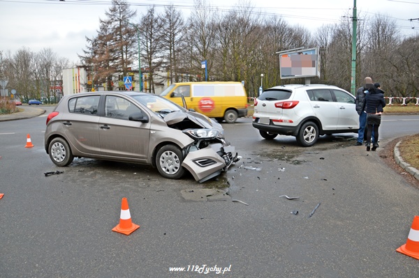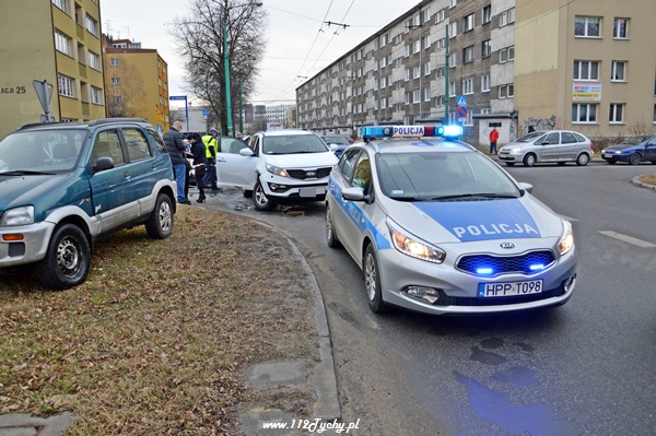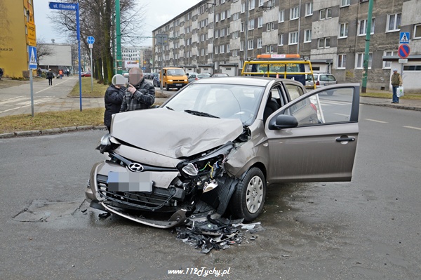 14 lutego około godziny 8.40 na skrzyżowaniu ulic Edukacji- Fitelberga – Filaretów doszło do zdarzenia drogowego z udziałem trzech samochodów osobowych. Wyjeżdżająca z ul. Fitelberga kierująca samochodem KIA nie ustąpiła pierwszeństwa przejazdu jadącej ulicą Edukacji kierującej Hyundaiem. Hyundai po uderzeniu w samochód Kia uderzył jeszcze w wyjeżdżający z ulicy Filaretów samochód Daihatsu. Na miejsce zadysponowany został patrol WRD z KMP Tychy. Miejsce zdarzenia było już zabezpieczone. Po dotarciu na miejsce Policji kierująca Hyundai-em poprosiła o wezwanie karetki pogotowia ze względu na ból szyi. ZRM po przybyciu przebadał jednak obydwie kierujące. Nic im się nie stało. Ze względu na uszkodzenia pojazdów i wyciekające płyny eksploatacyjne na miejsce wezwana została tyska Straż Pożarna. Po kilku minutach na miejsce przyjechał jeden zastęp z JRG Tychy (GBA). Działania strażaków polegały na odłączeniu akumulatora w rozbitym Hyundai-u oraz uprzątnięciu rozrzuconych elementów oraz neutralizacji rozlanych płynów. Przez około 45 minut ruch w tym miejscu był utrudniony. Dalsze postępowanie prowadzą Policjanci z KMP Tychy.