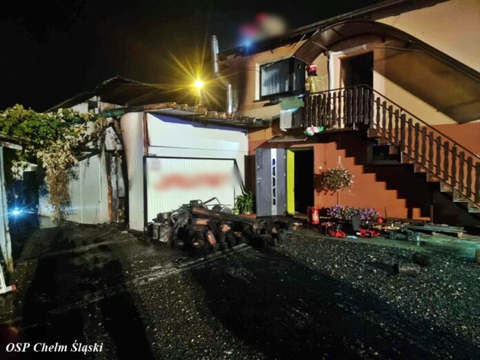 24 września około godziny 1:30 dyżurny SK KM PSP Tychy otrzymał zgłoszenie o pożarze przydomowego blaszanego garażu przy ul. Ziemowita w Lędzinach. Na miejsce zgłoszenia zadysponowane zostały zastępy strażaków OSP Lędziny i JRG Tychy oraz patrol bieruńskiej Policji. Po przybyciu pierwszych zastępów na miejsce KDR drogą radiową poprosił o zadysponowanie dodatkowych sił i środków w postaci ciężkich samochodów ratowniczo – gaśniczych. Dyżurny SK KM PSP Tychy zadysponował dodatkowo ciężkie samochody z jednostek OSP Chełm Śląski, OSP Bieruń Stary i OSP Bieruń Nowy. Działania strażaków na miejscu pożaru polegały na podaniu dwóch prądów wody: jeden w natarciu na palący się garaż, a drugi w obronie przylegającego domu. Przed przybyciem strażaków na miejsce z domu jednorodzinnego ewakuowało się 6 osób. Pożarem objęty był blaszany garaż o wymiarach 8x4m i wysokości 5m, który był podzielony na dwie części. W jednej znajdowały się maszyny i urządzenia, a w drugiej kotłownia i składowane drewno. Cały czas strażacy kontrolowali miejsce pożaru przy użyciu kamery termowizyjnej. Po ugaszeniu pożaru strażacy sprawdzili budynek mieszkalny przy użyciu detektora wielogazowego – nie wykryto zagrożenia. Działania na miejscu zostały zakończone po około czterech godzinach. Trwa ustalanie przyczyn i okoliczności powstania pożaru.