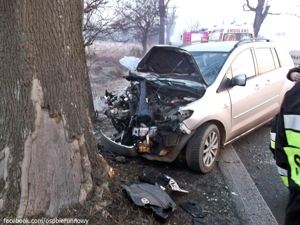 16 lutego około godziny 6.45 do MSK w Tychach wpłynęło zgłoszenie o wypadku drogowym w Kopciowicach na ul.Chełmskiej (pogranicze Bierunia i Chełmu Śląsiego). Na miejsce zadysponowane zostały: jeden zastęp z JRG Tychy (GBA) i dwa zastępy z OSP Bieruń Nowy (GBARt i SLRt), karetka pogotowia oraz patrol Policji z KPP w Bieruniu. Po dotarciu na miejsce ratownicy zastali samochód osobowy Mazda rozbity na drzewie. Osoba kierująca pojazdem była już w karetce pogotowia. Działania strażaków polegały na zabezpieczeniu miejsca zdarzenia. Osoba ranna została przewieziona do Szpitala w Tychach. W trakcie działań ruch na ul. Chełmskiej był utrudniony. Około godziny 7.30 działania zostały zakończone i zastępy powróciły do koszar. Przyczyny i okoliczności wyjaśniają Policjanci z KPP w Bieruniu.