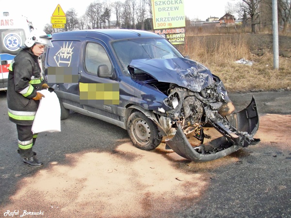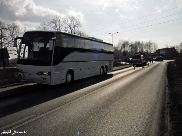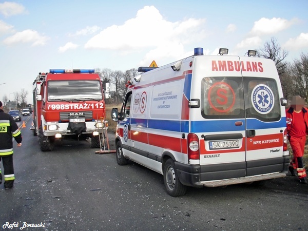 17 lutego około godziny 10.30 do dyżurnego tyskiej Straży Pożarnej wpłynęło zgłoszenie o zderzeniu autobusu z samochodem osobowym w Chełmie Śląskim na skrzyżowaniu ul. Górnośląskiej i Chełmskiej. Na miejsce zadysponowane zostały trzy zastępy z JRG Tychy (GBA, GCBA, SCRt), dwa zastępy z OSP Chełm Śląski (GBA, GLM), karetka pogotowia oraz dwa patrole Policji z KPP w Bieruniu. Po dotarciu na miejsce okazało się, że poszkodowana kobieta kierująca samochodem osobowym jest już pod opieka ZRM. Działania strażaków polegały na zabezpieczeniu miejsca zdarzenia odłączeniu akumulatora w rozbitym samochodzie osobowym oraz neutralizacji płynów eksploatacyjnych. Ranna kobieta została zabrana do szpitala na dokładniejsze badania ze względu na to, że jest w ciąży. Dodatkowo strażacy kierowali ruchem w trakcie prowadzenia działań ratowniczych oraz podczas sprzątania elementów pojazdów. Działania trwały około 1,5 godziny, następnie zastępy powróciły do koszar. Policjanci z KPP w Bieruniu wyjaśniają przebieg i okoliczności zdarzenia.