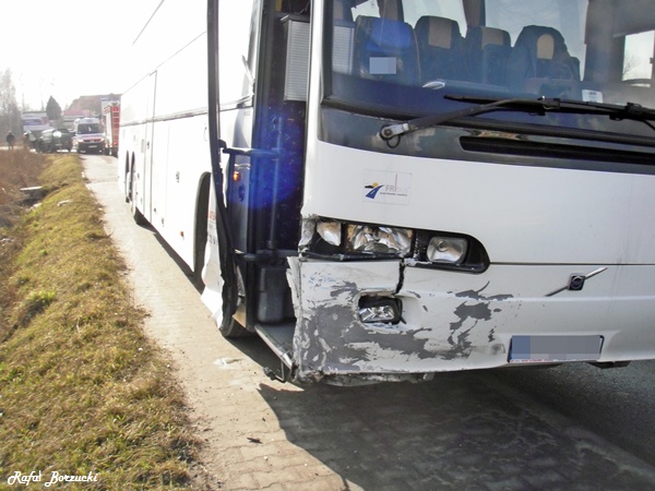 Kolizja autobusu i osobówki w Chełmie Śląskim
