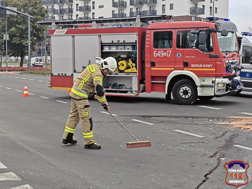 10 października około godziny 11:10 na skrzyżowaniu ul. Sikorskiego – al. Bielska – ul. Stoczniowców 70 doszło do czołowo – bocznego zderzenia dwóch samochodów osobowych. W zdarzeniu brały udział VW Golf oraz Lexus. Na miejsce zdarzenia zadysponowane zostały: ZRM, zastęp strażaków OSP Bieruń Nowy oraz patrol Policji. Na czas działań służb ratunkowych ruch w kierunku Kobióra został zablokowany. Ze wstępnych ustaleń pracujących na miejscu Policjantów wynika, że sprawcą zdarzenie jest kierowca VW, który wjechał na skrzyżowanie na czerwonym świetle (zielona strzałka do skrętu w prawo) doprowadzając do zderzenia z Lexusem. Kierująca Lexusem trafiła pod opiekę przybyłych na miejsce ratowników medycznych. Na szczęście po przebadaniu okazało się, ze nie doznała obrażeń i pozostała na miejscu zdarzenia. Po wykonaniu czynności przez pracujących na miejscu Policjantów uszkodzone pojazdy został zepchnięte ze skrzyżowania i ruch został przywrócony. Policjanci KMP Tychy prowadzą dalsze postępowanie w tej sprawie.