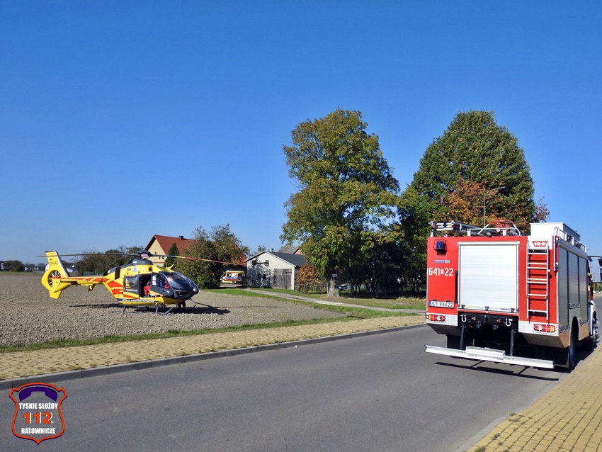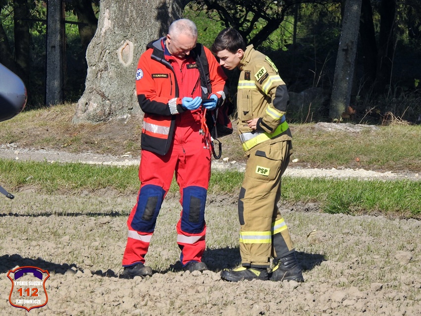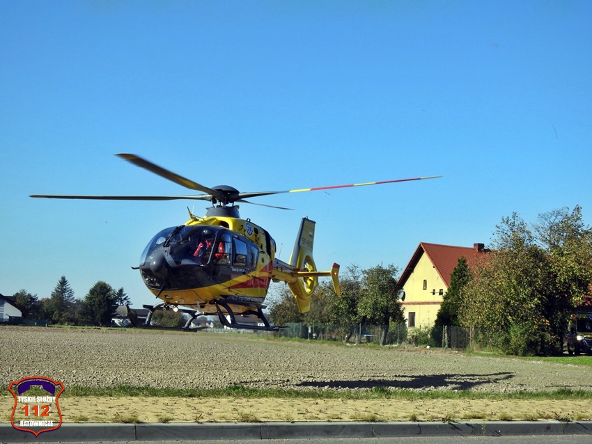 18 października po godzinie 13 operator numeru alarmowego 112 otrzymał zgłoszenie, że na terenie jednej z posesji przy ul. Dzwonkowej doszło do wypadku. Ze zgłoszenia wynikało, że 38 – letnia kobieta została poturbowana przez konia. Na miejsce zdarzenia zadysponowany został naziemny ZRM, załoga Lotniczego Pogotowia Ratunkowego – Ratownik 4 oraz zastęp strażaków JRG Tychy celem zabezpieczenia lądowiska. Po przybyciu pod wskazany adres ratownicy medyczni wraz z lekarzem udzielili poszkodowanej kobiecie niezbędnej pomocy. Naziemną karetką została ona przetransportowana do tyskiego szpitala celem dalszej diagnostyki. Po około czterdziestu minutach działania na miejscu zostały zakończone.